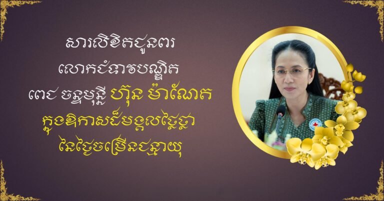 ឯកឧត្តម ឧត្តមសេនីយ៍ឯក ដោក សុផា ផ្ញើសារលិខិតជូនពរ ជូនចំពោះលោកជំទាវបណ្ឌិត ពេជ ចន្ទមុន្នី ហ៊ុន ម៉ាណែត ក្នុងឱកាសពិធីចម្រើនជន្មាយុ