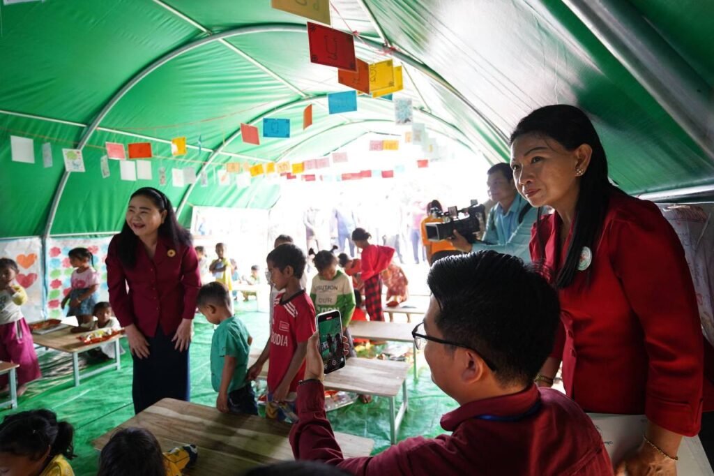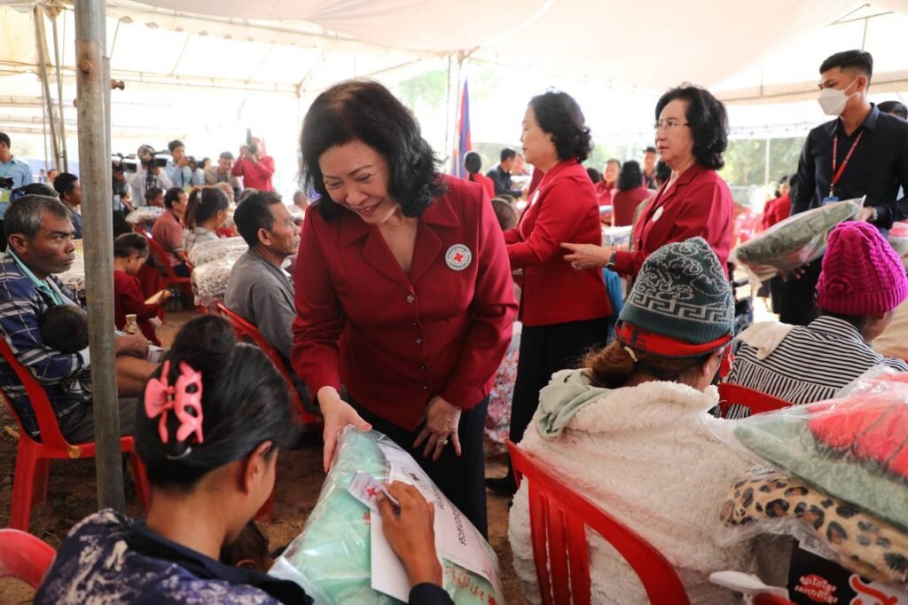 នាកិច្ចសំណេះសំណាលសួរសុខទុក្ខជាមួយប្រជាជនភៀសសឹកទាំងអស់ អ្នកម្ដាយមនុស្សធម៌ សម្តេចកិត្តិព្រឹទ្ធបណ្ឌិត ប៊ុន រ៉ានី ហ៊ុនសែន បានពាំនាំនូវព្រះរាជបន្ទូលរបស់ ព្រះករុណា ព្រះមហាក្សត្រ ជាអម្ចាស់ជីវិតលើត្បូង និងព្រះសវណីយ៍ សម្តេចព្រះមហាក្សត្រី ព្រះវររាជមាតាជាតិខ្មែរ ព្រះប្រធានកិត្តិយស កាកបាទក្រហមកម្ពុជា ជាទីគោរពសក្ការៈដ៏ខ្ពង់ខ្ពស់បំផុត ដែលព្រះអង្គទាំងទ្វេបានផ្តាំផ្ញើសួរសុខទុក្ខ និងក្តីនឹករលឹក ជាពិសេសការគិតគូរពីសុខទុក្ខប្រជានុរាស្ត្ររបស់ព្រះអង្គនៅគ្រប់ទីកន្លែង និងគ្រប់ពេលវេលា ព្រមទាំងសូមជូនពរបងប្អូនប្រជាពលរដ្ឋសូមមានសុខភាពល្អ ដើម្បីបន្តប្រកបរបរចិញ្ចឹមជីវិតតទៅមុខទៀត។
